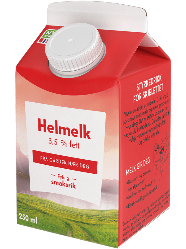 Lettmelk 3,5 % fett har en fyldig smak og er en kilde til næringsstoffer som kalsium, protein og jod. Ãn kvart liter dekker opptil 40 % av barns daglige kalsiumbehov. 250 ml.