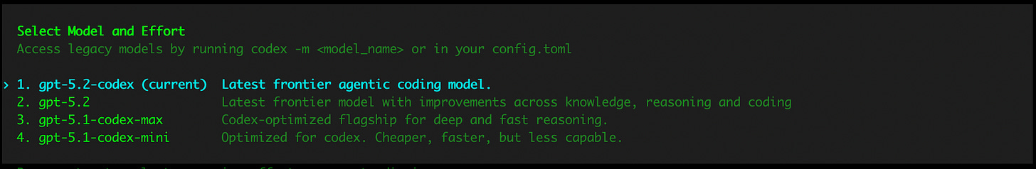 At the time of writing, gpt-5.2-codex is unambiguously the best, thinks carefully, and makes fewer mistakes than other models.
