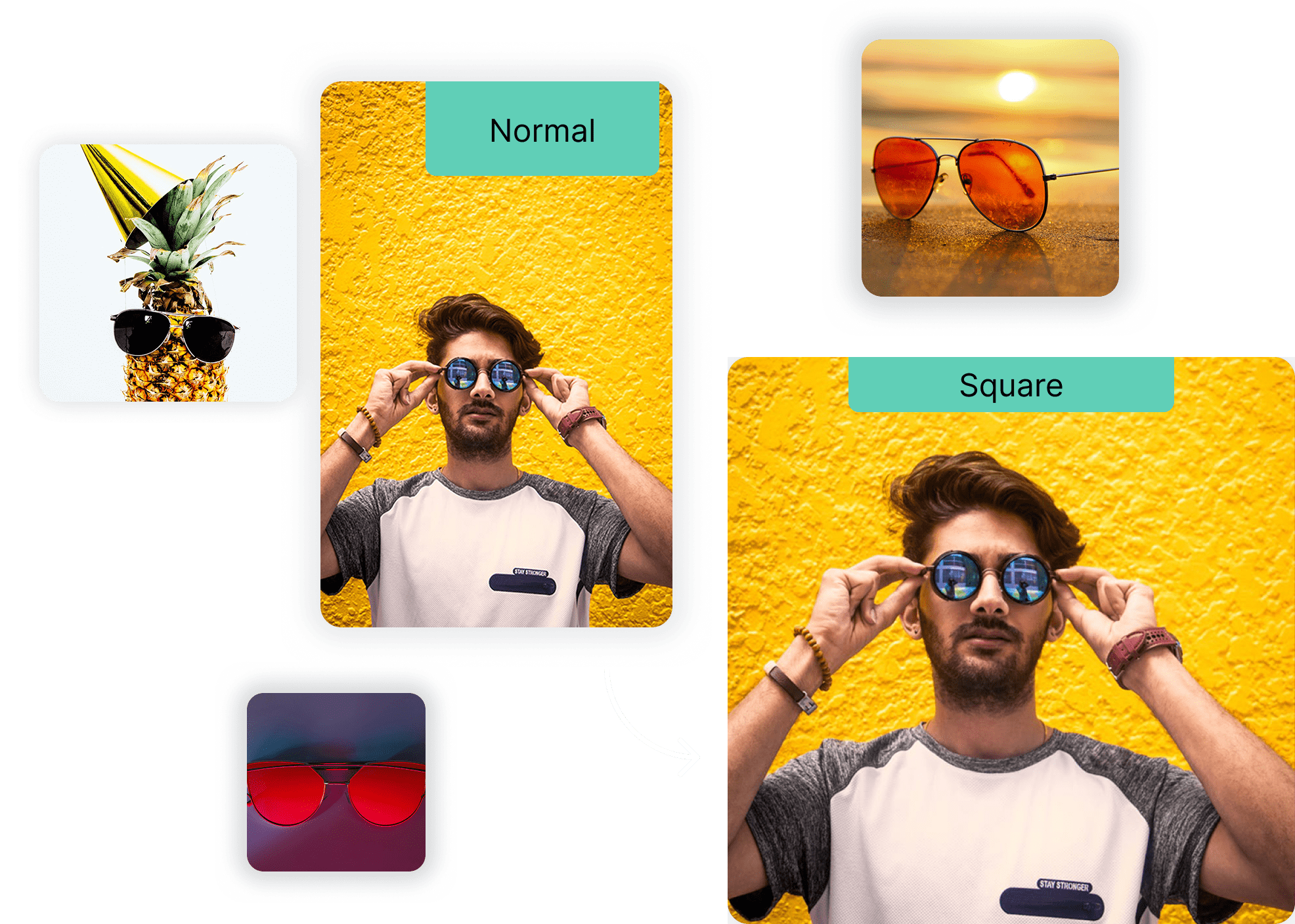 Square crop images online using our bulk tools, or use the API to apply consistent square cropping across your applications and projects.