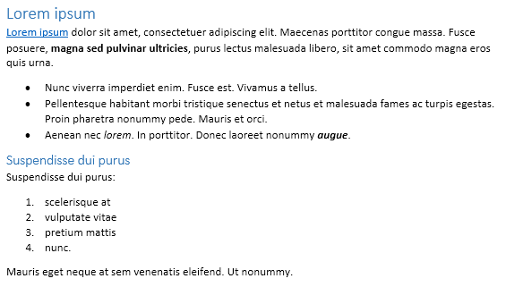 Numbering and bullets lists