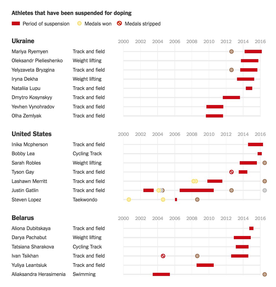 Then every name and doping suspension in our spreadsheet got checked and double checked, and if possible, backed up by official documents such as newsletters from International Association of Athletics Federations.
