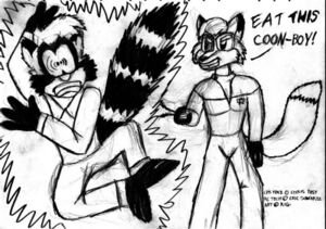 - Canadian fantards Style Wager and Greg Older did an even shittier semi spin-off called Dela the Hooda. There won't be an article about it however because the "archive" is so fucking unusable it hurts more than the actual content. (Which, from what we could gather, features a lesbian fox sent in our universe by a Nazi scientist.)