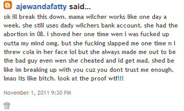 Recently, she has had several 'coffee dates' at Thtarbucks, where she Uber's her mom drives her to meet her unsuspecting victims. Of course, she lets them pay for her $6 cup of sugareded bean water (The Wilcher women NEVER pay!). Not surprisingly, Kai has had many failed dates, including meeting men who told her that she was too fat, too smelly and even one who insulted just about everything about her but still managed to fuck her in the backseat of his hooptie (he was "tho mean"). Needless to say, she never heard from him again.