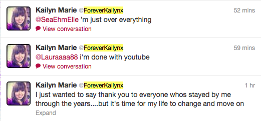 Kailyn's lifeblood, her bread and butter, was her YT channel "Forever Kailyn". Boasting a high of almost 13,000 subscribers and averaging between 1,000-3,000 views per video, it took Kai several years to get to such shitty success. Kai had her Google ad revenue disabled almost as soon as it was granted on account of the dipshit clicking her own ads in hopes of a bigger paycheck[6]. Her uploaded videos include 20 minute foundation applications, Wal-Mart clothing hauls and outfits of the day (OOTD) videos. Occasionally, Mama would forget to give Kai her rere meds and Kai would upload videos of her singing and dancing or babbling about nothingness. Rating were always disabled on her channels because the dislikes to likes ratio is always high.