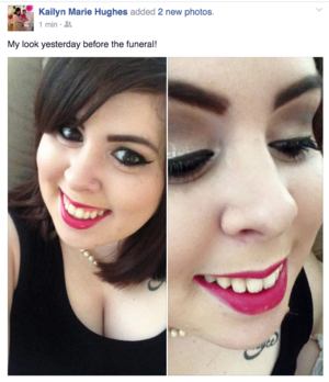 Tragically, David passed away in early July of 2015. When Kailyn found out about this she, of course, made it all about her by immediately posting old photos of them together (mostly inappropriate ones, such as her in a bikini) and talked about how they had all their 'firsts' together (wink). She immediately began stalking all David's Facebook friends in order to gets the deets on his death, and to find out when the funeral was and cop a ride (because surely Lisa wasn't going to take her). The day after the funeral, she posted her 'funeral makeup' and a 'funeral selfie' with a friend (who was really trolling her by standing with Kailyn's infamous leg pop/hand on hip pose), in both of which she was grinning. On the selfie, she even posted the caption "we look fab" with a backdrop of the funeral home and hearse. This 'friend' specifically asked that Kailyn NOT post the picture on social media, but Kailyn being Kailyn, ignored this person's request and posted it anyway because she is a sociopath and doesn't care about other people's feelings. Needless to say, her behavior during this sad event was inappropriate and put another strain on her already sham of a marriage. Matt was NOT happy. BTW, she didn't cry when Davit died either.
