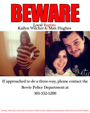 On April 13th 2012, Friday the Thirteenth, lulzy wedding bells were heard across Maryland State. Kai and Matt arrived in their most dazzling attire to be wed at the elegant St. Mary's County courthouse. Kai wore a dollar store tiara with an ill-fitted $20 dress from Kohl's, while Matt simply rolled out of bed and dressed himself in a vintage McDonald's Manager's uniform. None of the Wilchers or Hughes were in attendance.