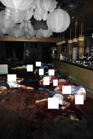 1-14 Jakarta Attacks 2017 Saint Petersburg Metro bombing American Airlines Flight 63 Ariana Grande Massacre ATHF Terrorist Attack Beheading videos Binghampton Tet Offensive BLMKidnapping Boston Marathon Bombing Breitscheidplatz Crocus City Hall Massacre Dallas Police Shootings Gaza War Halle synagogue shooting Khalid Masood's Westminster motor massacre London Bridge Attack 2017 Mass Shooting Narcovideos Nice Truck Attack 2016 Nitroglycerin Occupy Wall Street Paris Mass Shooting Pittsburgh Paint Job Pulse Nightclub Massacre Police Brutality Ramadan Van Man Reina Nightclub Massacre Waco WTC