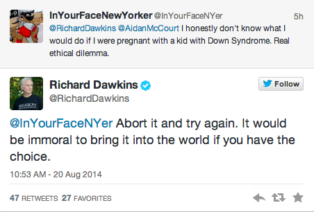 The Internet became outraged yet again and before you could say "Dawkins cock" the internet humanitarians swarmed the comments section telling Dawkins with what a horrible human being he was. Dawkins these days can't shut up for five minutes before he makes an ass clown of himself, proving how rational and scientific atheists are.
