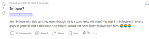 A sizeable amount of Rick and Morty fans are connoisseurs of scat pornography; in response to being questioned about liking weird porn, a fan wrote the following: