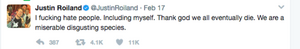 OH GEEZ, JUSTIN ROILAND IS CHARGED WITH DOMESTIC BATTERY AND FALSE IMPRISONMENT…