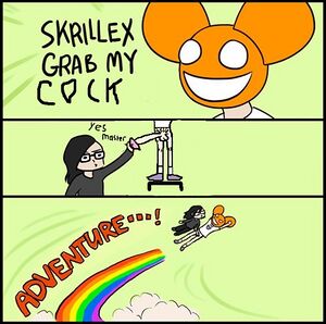 On the night of the 2012 Grammy's, Deadmau5 wore a shirt with Skrillex's cellphone phone number on it on television and then invited every guy who called back to their hotel room for a good old fashioned Roman orgy. It was estimated over 9000 penises rawed Deadmau5 and Skrillex that night and the following morning.