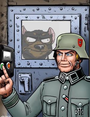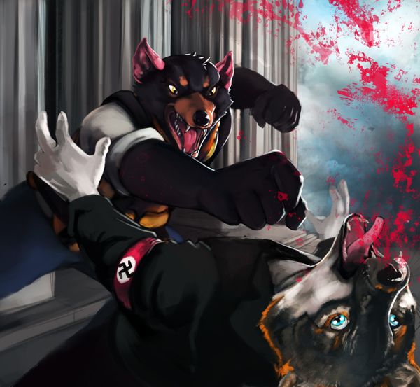 When "Rocky Mountain Furry Convention" was announced to be in Denver, Colorado at Marriott hotel in 2017, Deo learned that her most sworn enemy, Foxler Nightfire, 'the founder and current leader of the Furry Raiders', will have been attending this event this year. In order to cool down the tension between Deo's circle and Foxler's Raider group, the organizers requested members of The Furry Raiders not to wear the armband hoping that it will not trigger the leftarded furcunts. Despite this, Deo was still triggered at the fact that "there are nazis in mah fandom". She threatened that if she sees Foxler at the convention, she will not hesitate to attack him in public. As a consequence, a report has been filed to the police department of Denver to take an investigation. After Deo realized that she upset a lot of furfaggots, she resorted to making false accusations of her being threatened by alt-right furtards bringing their guns to the con. Obviously, this was a lie, as she wanted to have Foxler get blamed for the cancellation. This commissioned artwork requested by Deo perfectly exhibits the hostile and violent nature as well as the desire to cause harm to others. In other words, the convention lacked the funds to prevent a possible physical violence that Deo would have initiated against Foxler; for that reason, Marriott cancelled the entire event. Good job ruining the safe space in your own fandom, Deo. 👏 👏 👏