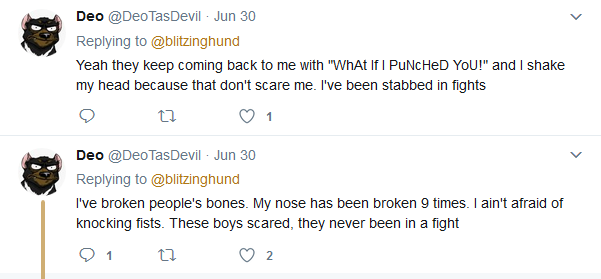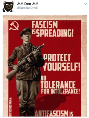 Inspired by the feces and urine consuming cuckold who punched Richard Spencer, all the dildocratic lunatics of the far left had a huge orgasm and established themselves the duty to commit assault against people who they labelled as nazis on sight. Deo, for example, tremendously exemplified this radical leftarded behavior when she threatened to commit assault against any RMFC attendee who is either member of the furfaggot nazi group “Furry Raiders” or someone who does not side with Deo's crusade against the fucking fascists. Even though the Furry Raiders agreed to RMFC’s request not to wear the armbands at this year's convention, that was not enough for Deo, so she resorted to acting like an autistic screeching libtard and tweeted threats that she cannot wait for the opportunity to punch some Nazis. As a result to assault threats made by Deo, she accomplished to have an entire furfaggot convention cancelled due to lack of funds to increase security to prevent violent political clashes like the ones that occurred at Berkeley University.