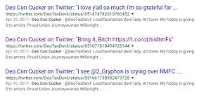Archived tweets of deo weeping about people using fair use law to troll her: