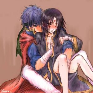 - Hector: Eliwood's buttbuddy who slept during all of his classes. He and Eliwood have sparring matches on a regular basis. Is quick to anger and aggression because his parents died when he was young and his older brother was too busy ruling the country to play with him. Has blue hair, is royalty, wears a cape, wields axes (ZOMG PLOT TWIST) and is killed by Zephiel's armies in the Binding Blade. See? Eliwood fucked up pretty bad.