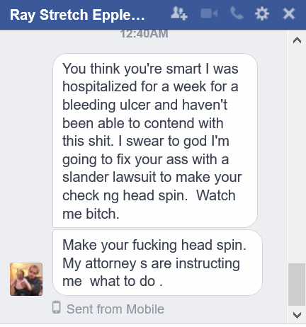 George spouted some butthurt threats that were nothing the goons hadn't encountered from the fag before, this time it was more like a death keel, a squealing pig refusing to be put down.