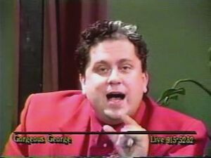 The Gorgeous George Show is the media equivalent of AIDS crossed with ebola. The show itself is about as comedic as watching your dog die of cancer, and then engaging in unprotected penetrative anal sex with putrid porcupine roadkill with a maggot festering case of hemorrhoids (but at least that would smell better). George and his inbred lap dog, Kevin, both have severe speech impediments. The production value makes the average Christmas morning home movie look like Werner Herzog by comparison. The jokes themselves are only funny if you've never been allowed to leave your house in your whole life, and have therefore never been introduced the concept of humour until just seconds prior to seeing it. The likely result of that, would be for you to immediately develop a phobia of anything calling itself comedy or humour for the rest of your sad life. In many respects, the show provides an archetypal example of why cable access television is a gigantic failure, while simultaneously contributing the sole reason to preserve it. In any given episode, you can expect to be treated to any one or more of the following EnGorgeous George trademarks: