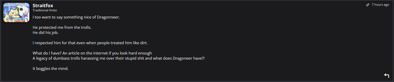 Reynard also makes it a habit to hide fucking everything. Any negative or ED related comments made on his pages have been hidden, and can only be viewed in the articles gallery. There are many, many more that could not be seen before Reynard hid all the evidence. He doesn't want his reputation to be ruined, which he still promises to shut down ED for. He must really mean serious business.