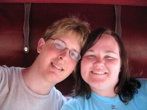His mate-- no, seriously, it's his girlfriend. She suffers from gigantic forhead disease.