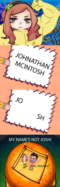 Jonathan "Josh" McIntoash is the straight, white male who speaks on behalf of all women via Anita, for whom he writes scripts, edits videos, dictates tweets, works as her "PR agent," and from whom he receives money and access to her mouth for his dick, which is undoubtedly as pasty and stubby as he is.
