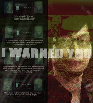 - A conversation/phone call at the end of the game about useless shit, with the current game's logo in white font imposed on a black background.