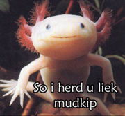- You can also try the Mudskipper page here or the Axolotl page here.Plz trash the fuck out them, with "So I Herd You Liek Mudkip" in random areas, repeatedly.