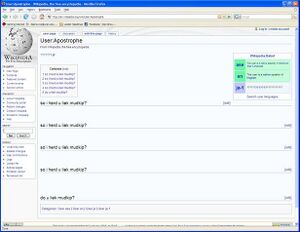 A wannabe admin called Apostrophe (or ' as he prefers to be called since he's too kewl for skewl) is the self-appointed guardian of all things Pokémon on TOW. He will revert any attempt to inject lulz into an otherwise tragically uninteresting topic and has claimed that "memes are never notable" in edit summaries when removing such things as the delicious Mudkip copypasta and related macros. So sensitive is this Miltopian faggot that he frequently lashes out like a widdle baby with a poopy nappy when he finds evidence of Mudkip liek on TOW and once threatened to report a member of Mudkip Nation to Mongo for WP:No Personal Attacks during a Talk page flame war over Mudkip. Here's his user page on TOW. The Wikipedia bigshots TheBilly and MelicansMatkin also still resist the power of Mudkip. They thus deserve to be tormented, though in some cases, a TOW account must first be made.