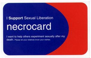 Precise figures for incorrect charges of necrophilia are difficult to establish, owing to the various legal categories that such activities are classified under in different jurisdictions and the fact that the partner in such activity is unable to tell law enforcement officials whether or not they consented. For these reasons, a "Necrocard" has been produced, analogous to an organ donation card, for consenting adults to signify their willingness to enter into sexual relations after their death.
