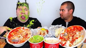 Nicholas' mukbangs more closely resemble shitty modern art than anything; many of the videos are entirely him stuffing his fat face while having a 16-year-old girl-tier mental breakdown with his poo-pushing boyfriend, Rodrigo Gonzalez for views. Also, he finds himself embroiled in pettier (likely orchestrated) drama with other "mukbangers", making him a controversial figure among the "mukbang community". However, unlike other mukbangers, he actually digests all of the ridiculous amounts of food he consumes, resulting in him (to the surprise of absolutely no one) becoming fatter.