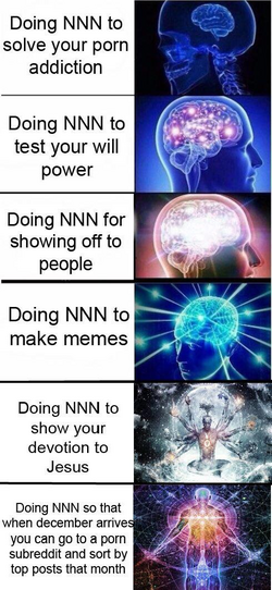 No Nut November (NNN; No Niggers November amirite?) is a special month event where over-time virgins force themselves not to fap to porn until the month ends. Doing so usually results in a temporary good life, the development of social skills, the improvement of confidence, and the provision of good energy, but all of these things are no longer possible for many people because they're too much of a lazy fucks to reach more than a day not to fap to porn. No Nut November could possibly be an event sent by God in an attempt to make virgins stand up like a man and get a life, as virgins are one of the largest groups of people that still live on our planet. This trend, however, has inspired a number of dumb events, such as No Simp September, an event that is in similar fashion to the NNN event where, instead of masturbation, you can't simp for a girl for a month.