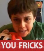 Knowing Sammy, whenever he doesn't like something, or is completely butthurt about something that doesn't even affect him directly, he will often go into his room, turn on his Fisher Price camera, and start screaming "FRICKEN" the whole entire time while jabbering on in his asspie language.