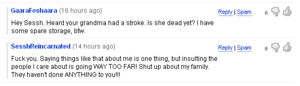 Despite her tough guy mature facade and manly voice, SesshReincaranted does have a sensitive side. Saying anything about her family is not funny, which means they should get trolled too.