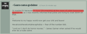 SesshReincarnated proved The Internet is serious business by mentioning that she was going to record the cases of harassment against her, since the police are cracking down on free speech on the Internet (apparently, satire and parody are illegal), bringing the lulz to new levels. SesshReincarnated is obviously a master of Internet Law and will no doubt make a fine E-lawyer one day. Until she grows up and stops being a bitch though, Sessh will have to settle for being an Attorney at lol.