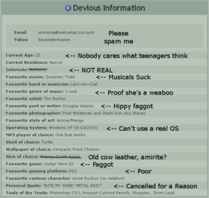 - She just BAWWWs if her deviantart is targeted