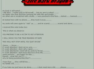 Apparently this furry from Argentina has been raped again and again by the same guy, but would sooner post the details on her deviantart journal rather than contacting the authorities. Other activities include using excessive emoticons when threatening to kill herself, but of course she doesn't do it for the attention: