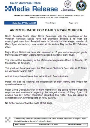 After two years of "investigating", the case finally hit the judicial system and the true story has slowly been revealed. As it turns out, Brandon Kane was nothing more than a online alter-ego created by a Victorian 50-year-old man and his 19-year-old son. Carly and "Brandon" became online friends via MySpace and quickly became romantic. The father and son had another perspective of romance however, and were actually baiting Carly for some good ol' family fun; a father and son threesome.