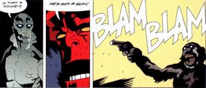Travis the Killer Chimp (1995 – February 16, 2009) was a 200lb (91kg) male chimpanzee who, having been featured in several American television commercials and television shows, was more talented than you ever will be. Named after the sociopathic Travis Bickle of "Taxi Driver," he reached worldwide notoriety when he was stabbed and killed after a sudden, vicious attack on a friend of his keeper while high on Xanax and Lyme disease medication. Travis was only 14 when he was brutally murdered by the Stamford police. Thus, in chimp years, he was afflicted with dementia. He is most notable for going batshit apeshit insane and eating a woman's face and hands.