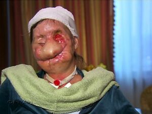 Charla Nash speaking to yet another ape about her tragedy.