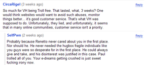 Renetto is one of YouTube's most notable trolls himself. His Vloggerheads venture basically equates to a mass manipulation of a bunch of thin-skinned low-lifes to jump on board his sinking ship whilst never giving a shit about them to begin with, all in a secret plan to turn a profit down the line. Now, those same retards are feigning false indignation and whining endlessly about being "used" and "lied to", and actually believed one of the most notorious and shameless megalomaniacs on YouTube cared about them in the first place. But chalk this one up as yet another failure on his part, and on every level, since the site is currently a fucking ghost town.