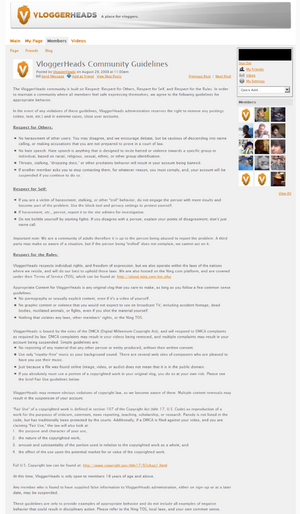 The term unwarranted self importance truly fails to adequately encompass the exact intentions and mindset of the creator(s), since, for all intents and purposes, the site is simply a failed attempt to create online oligarchy for the faint of heart. Proven abuse of power was shown to be shockingly common since the site's inception. Free speech is more a privilege there than a right and should you annoy the adminstrators, who've made surgical efforts to feign the notion they rule with a "fair" hand, you may find your ass curbside. The blatant irony of the existence of Vloggerheads is that the site itself, which is supposedly a drama-free zone, was the brainchild of the biggest drama whore in the history of YouTube itself. The stench of faggotry and pretentiousness resulting from the Vloggerheads drama polluted YouTube for a good portion of the summer of 2008.