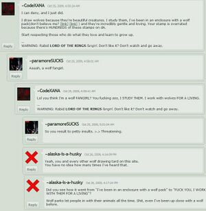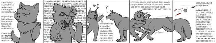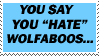 - Pro-wolfaboo with no mention of wolves whatsoever ("Wolf H8ers SUUUUUUUCK!!1!").
