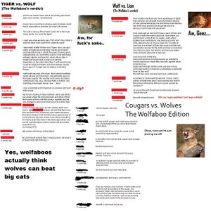 - Anti-wolfaboo and anti-wolf ("Fuck wolves! What about the Goliath Bird-eating Spider?!")