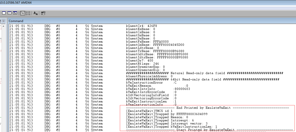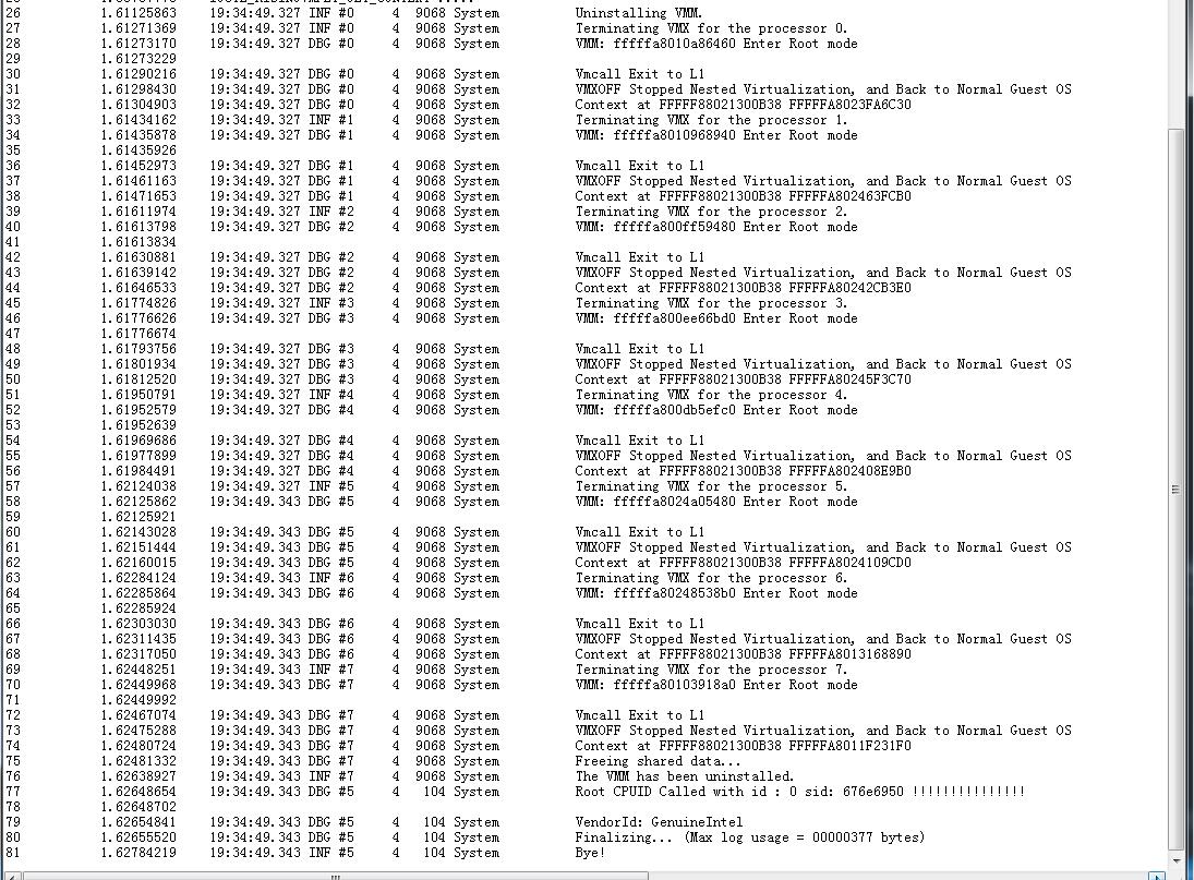 3. After printed VMCS, the emulation of vmexit is done, and kHypervisor will find out which is the original handler as following, the control flow is transfer to DdiMon now. (the kHypervisor is not supposed exists by Ddimon, but it does.)