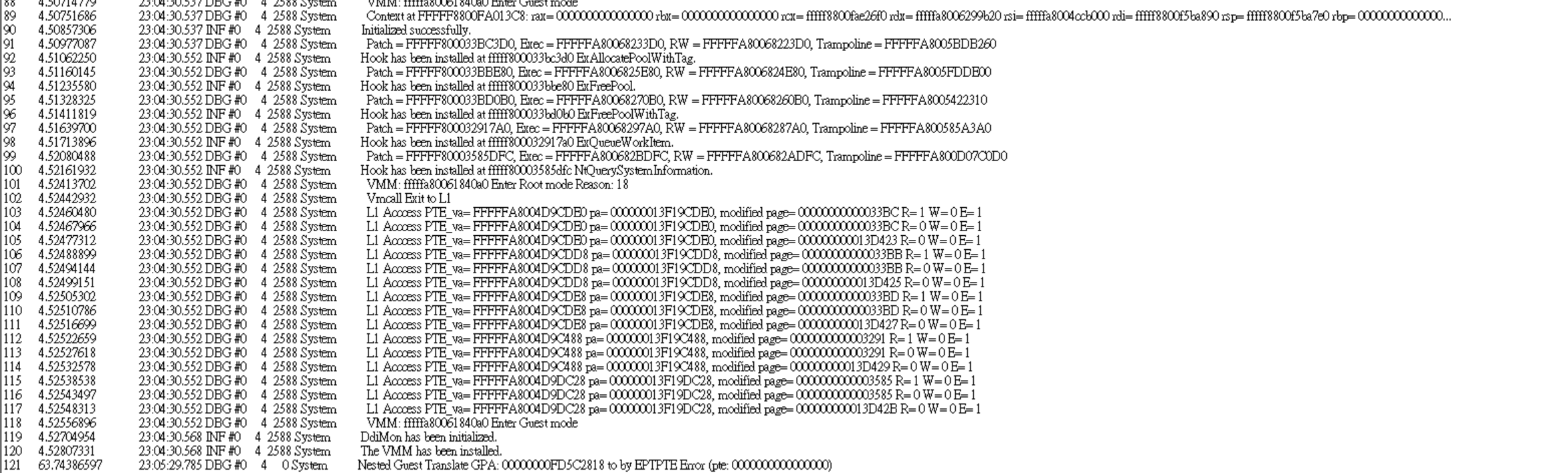 1. During the installion we could be able to see a result, since we set a breakpoint as soon as the DdiMon's virtualization.