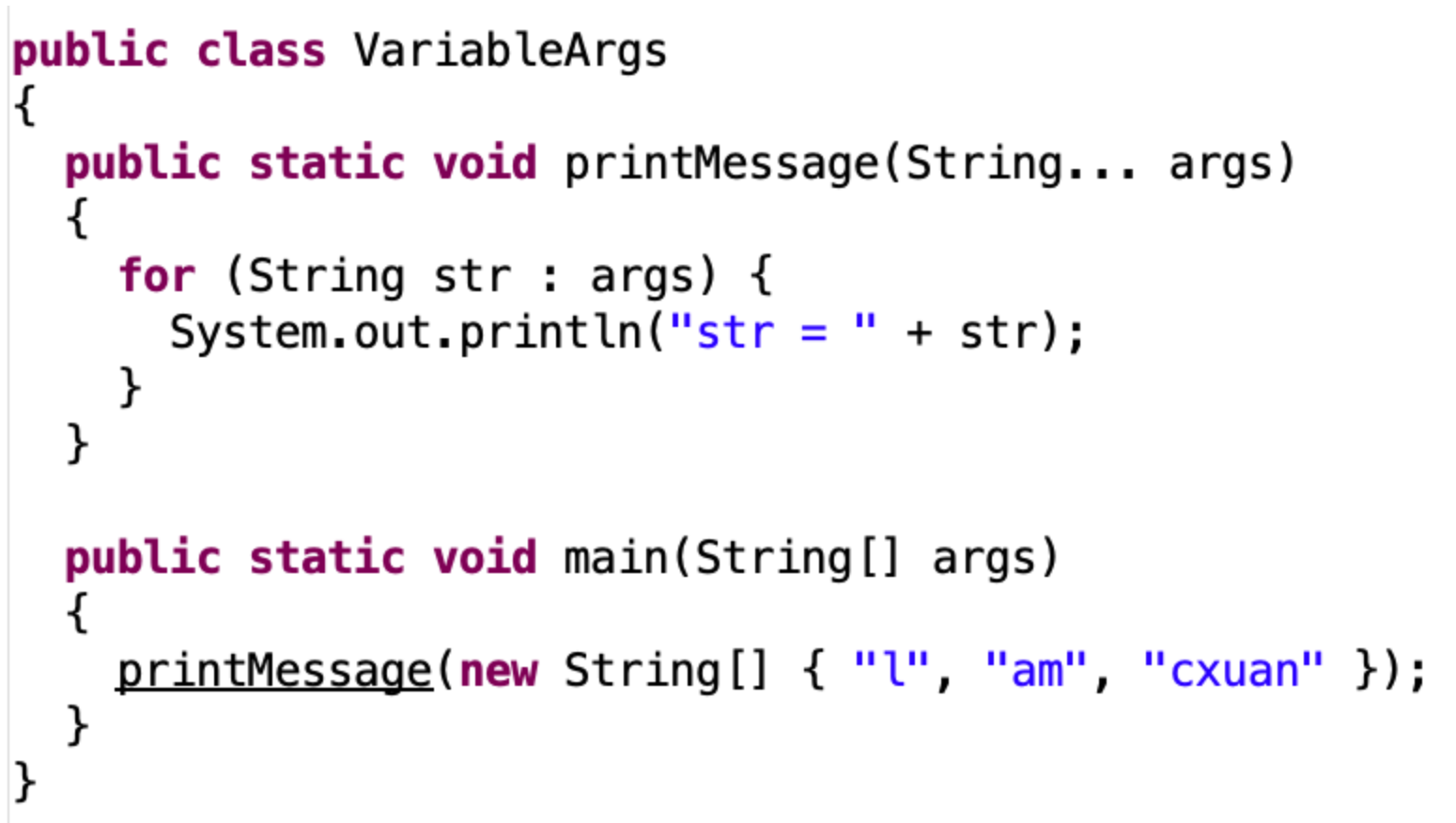 可以看到,printMessage() 的参数就是使用了一个数组来接收,所以千万别被变长参数忽悠了!