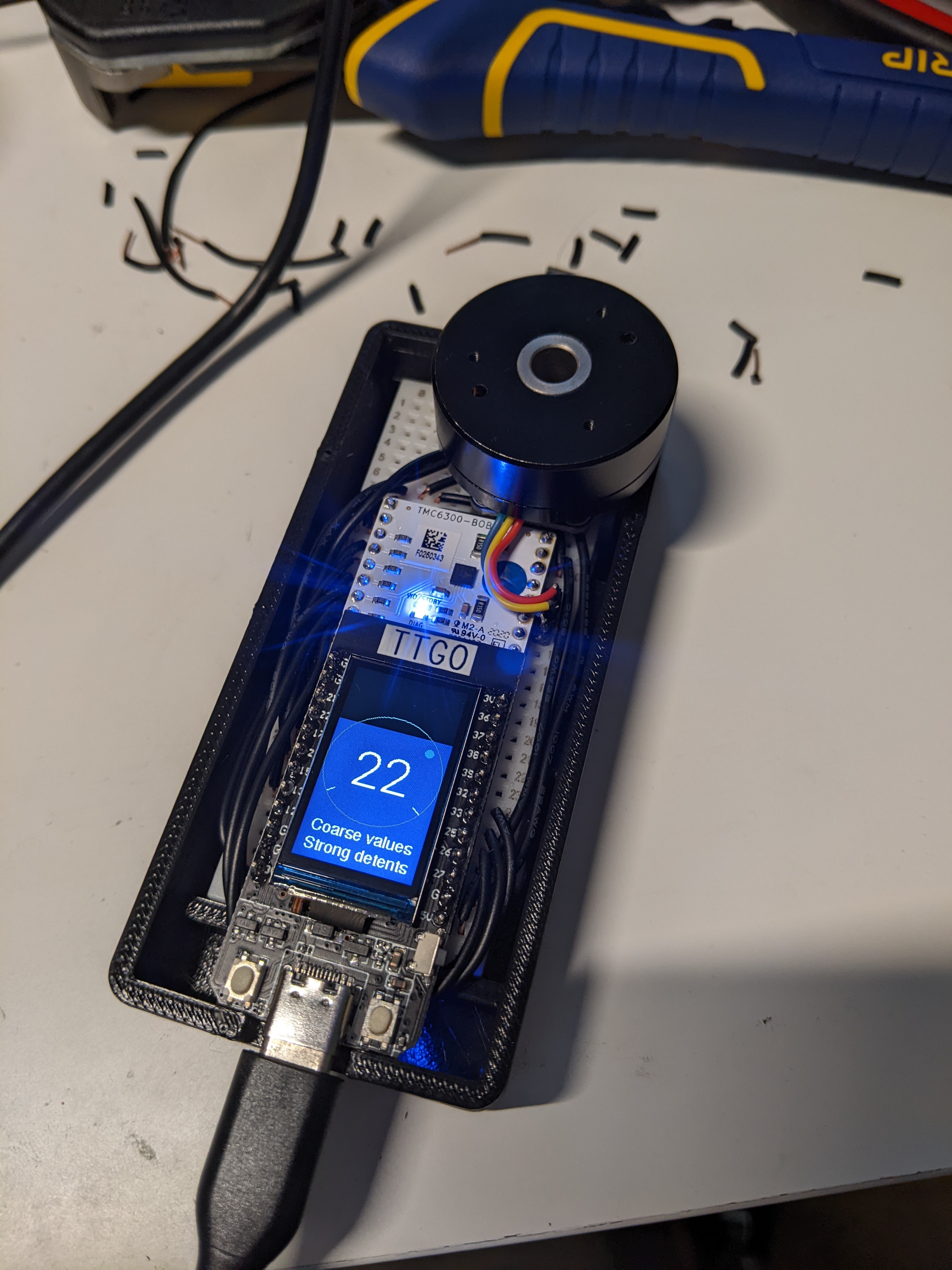 This project was greatly inspired by Jesse Schoch's video "haptic textures and virtual detents" and the corresponding discussion in the SimpleFOC community. Seriously, this project wouldn't exist if not for that video - thank you Jesse!