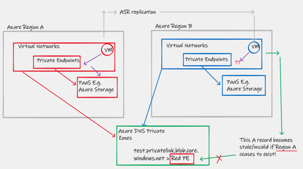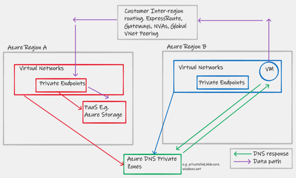 - Using the green global Azure DNS Private Zone, a remote IP address is returned from a common A record, directing traffic to the remote Private Endpoint.This not only results in sub-optimal traffic flow (see section 2.2.1), but also a datapath that is now broken if Region A is offline/unavailable