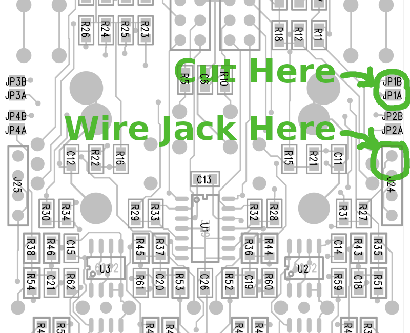 Audio input clipping on 1 channel distorts other channel input - TODO: document resistors to change amplifier gain
