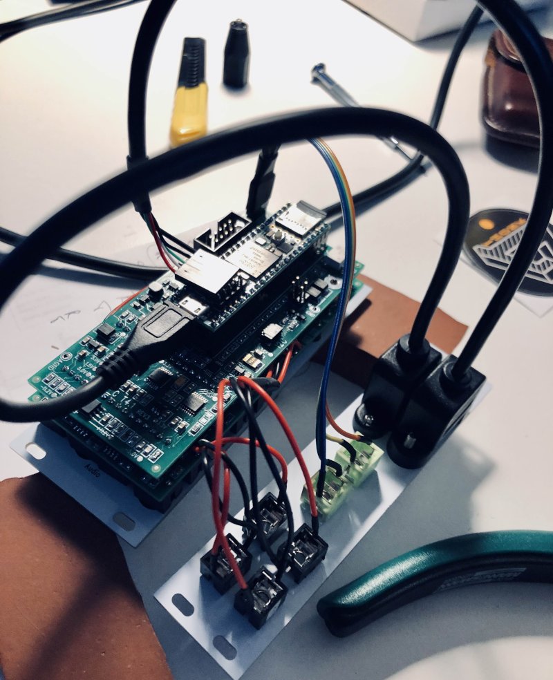 Audio input and output were also added, using fully independent bandwidth of the I2S (digital audio) port. Serial for MIDI, 480 Mbit/sec USB host, and I2C for future expansion are also available on connectors meant for expansion modules.