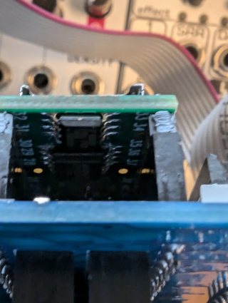Phazerville can use additional memory for audio delay effects. This 8MB PSRAM (ApMemory part number APS6404L_3SQR) or this larger 16MB PSRAM (ISSI part number IS66WVS16M8FBLL-104NLI) are supported.